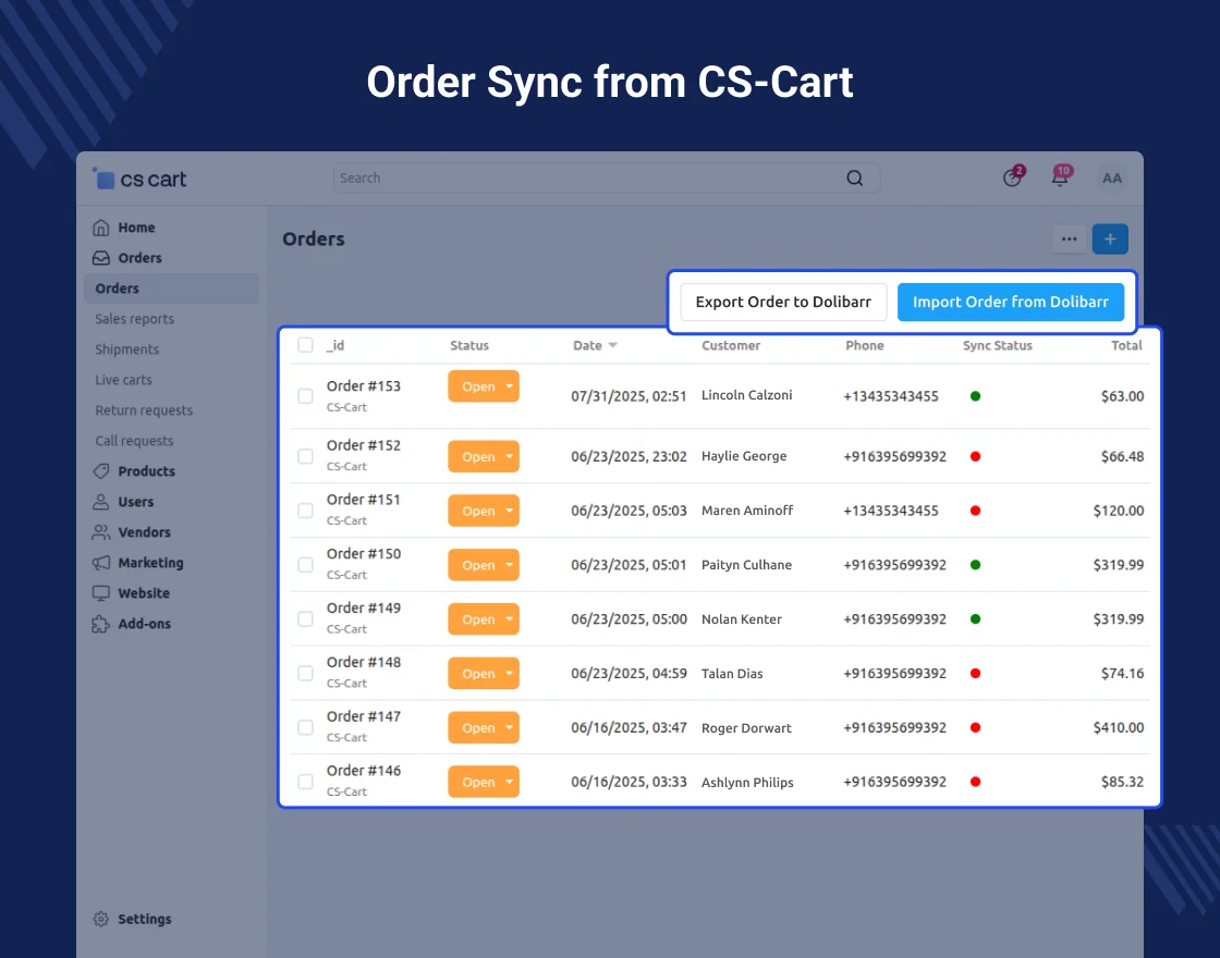 - New CS-Cart orders sync in real-time with Dolibarr.
