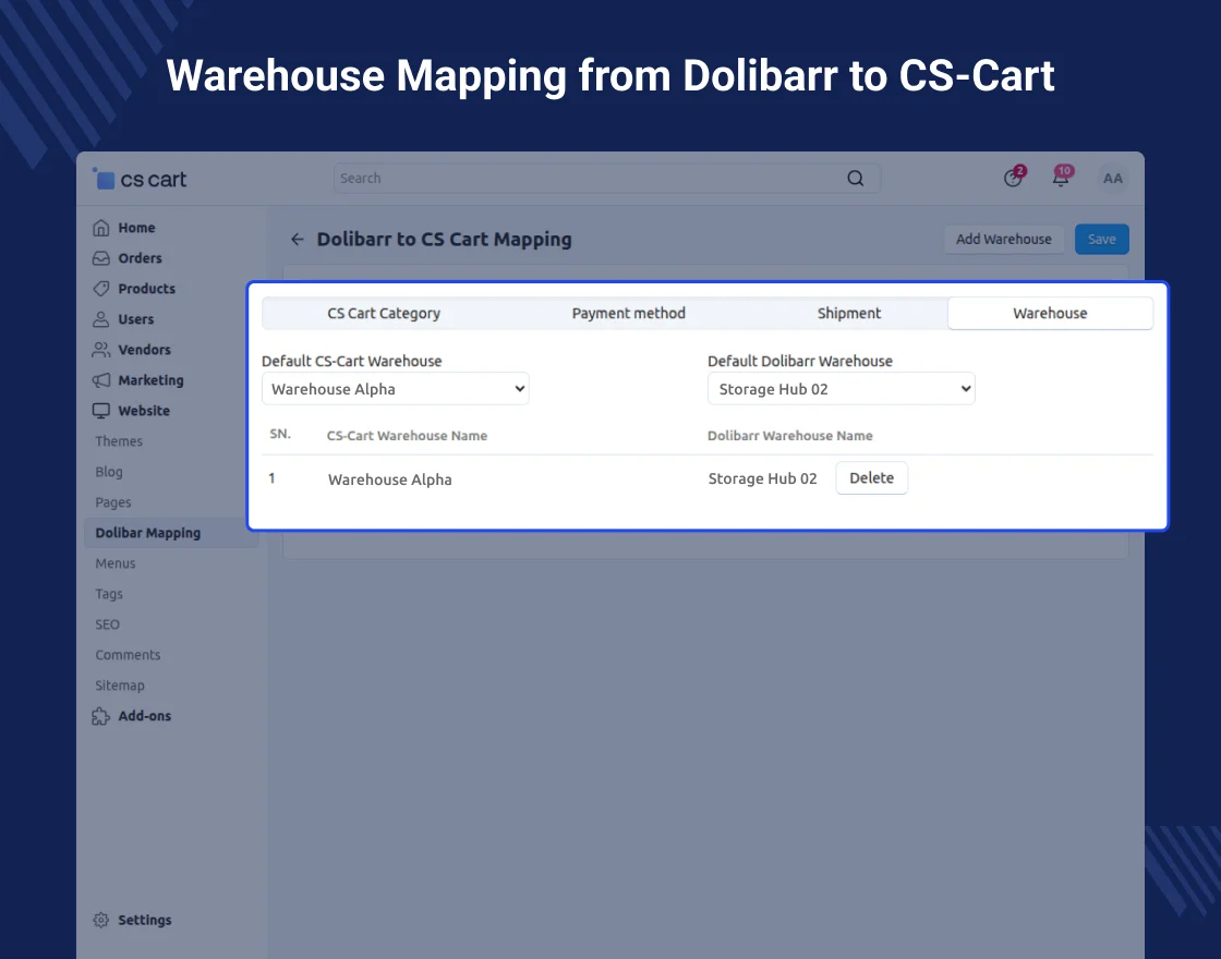 Install and activate the Warehouse add-on in CS-Cart before using this module.