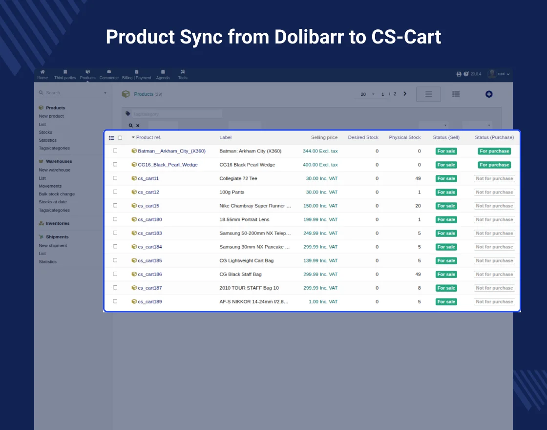 - Use cron jobs to update data from Dolibarr to CS-Cart.