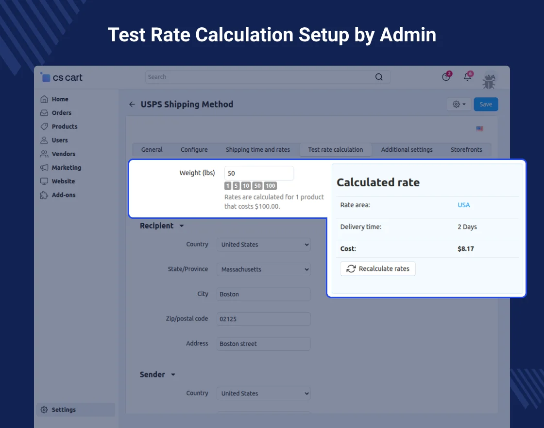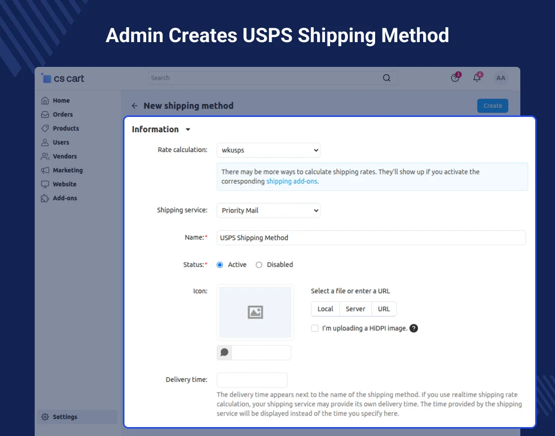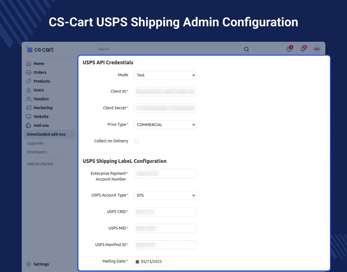 - Manage USPS shipping methods within the CS-Cart Admin panel.