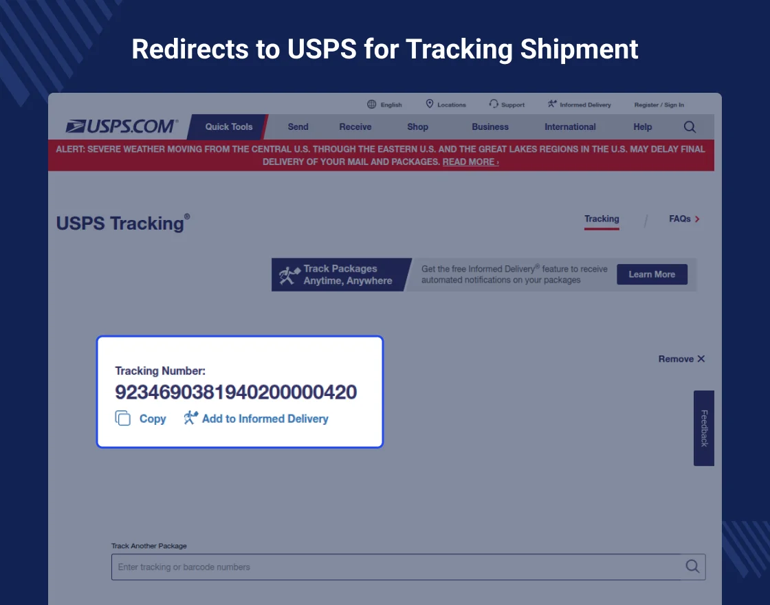 This allows the customers to choose the USPS shipping method on the checkout page and place the order. Once the order is placed, we can generate a shipping label and tracking number. The customers can use the tracking number to track their shipment on the USPS website.