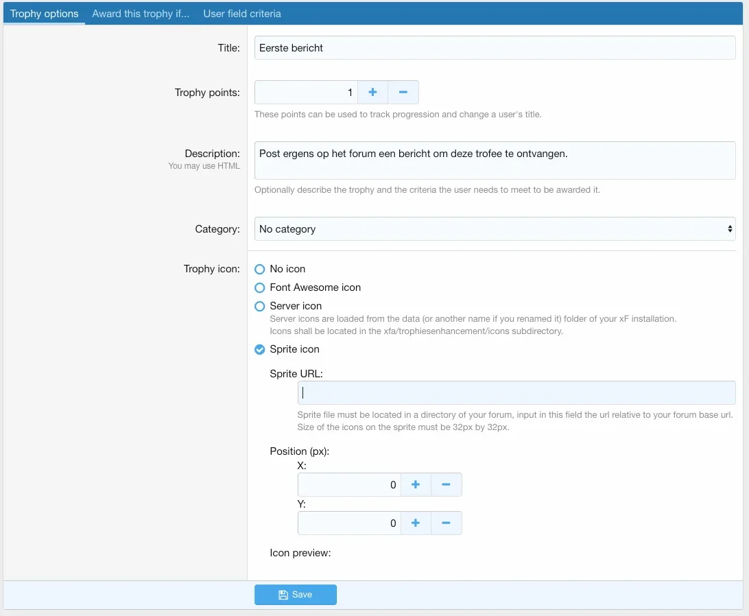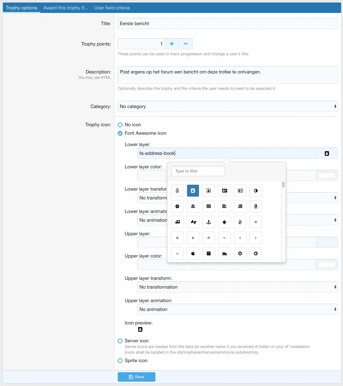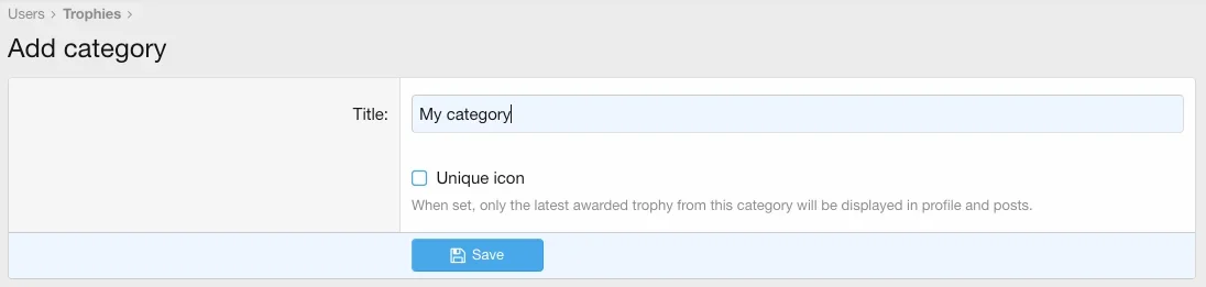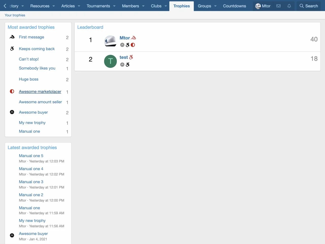 - Capability to limit icons displayable trophy for category to the latest awarded one (unique icon)