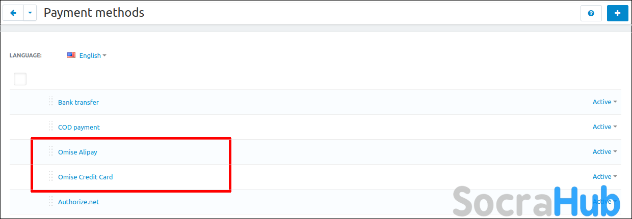 In tab "Payment methods" two new Omise payment methods have appeared.